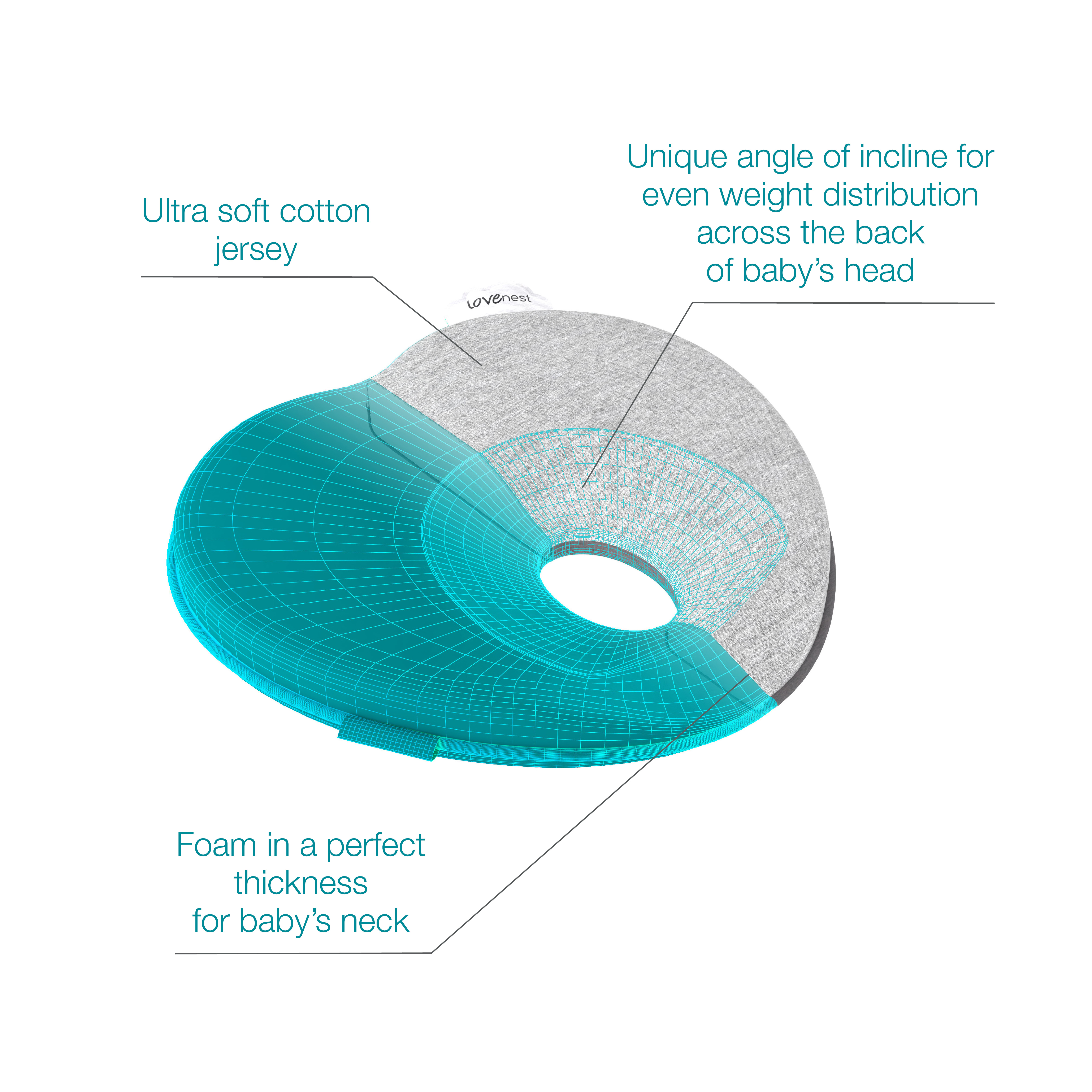 Lovenest ออกแบบโดยกุมารแพทย์ชื่อดัง จุดเด่นคือยามเด็กทารกนอน น้ำหนักจะถูกกระจายโดยรูปทรงของหมอนที่ออกแบบมา เพื่อลดการกดทับที่ด้านหลังศรีษะ ทำให้ศรีษะไม่เปลี่ยนรูปทรง และยังให้ความสบายยามที่เด็กทารกขยับตัวอีกด้วย